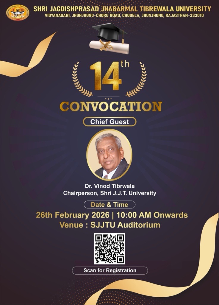 Once again, the fragrance of the annual convocation of Shri Jagdishprasad Jhabarmal Tibrewala University is knocking at the doors of us all. We, very cordially, wish to invite and welcome you on 26th February 2026, at Shri Jagdishprasad Jhabarmal Tibrewala University at this auspicious occasion.